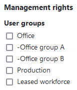 In some cases, users can be completely hidden by selecting an empty row as the user group. Even in this case the employee's information and worktime information remains stored in the database, and it can be made visible again by Deltabit's customer support.